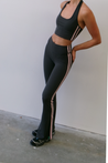 An essential, fashion forward addition to our core collection for contemporary movement. We've updated our Vibration Flare by elongating the bottom hem, making it more of a full-length fit for everyone yet maintained the ultra-supportive high waist, flattering curved seam detailed finish and retro flare! The Vibration Flare are the perfect blend of feminine and functional, crafted with our softest and most second-skin-like fabric ever. Now featuring our highly anticipated side stripe detailing for an aerodynamic aesthetic.