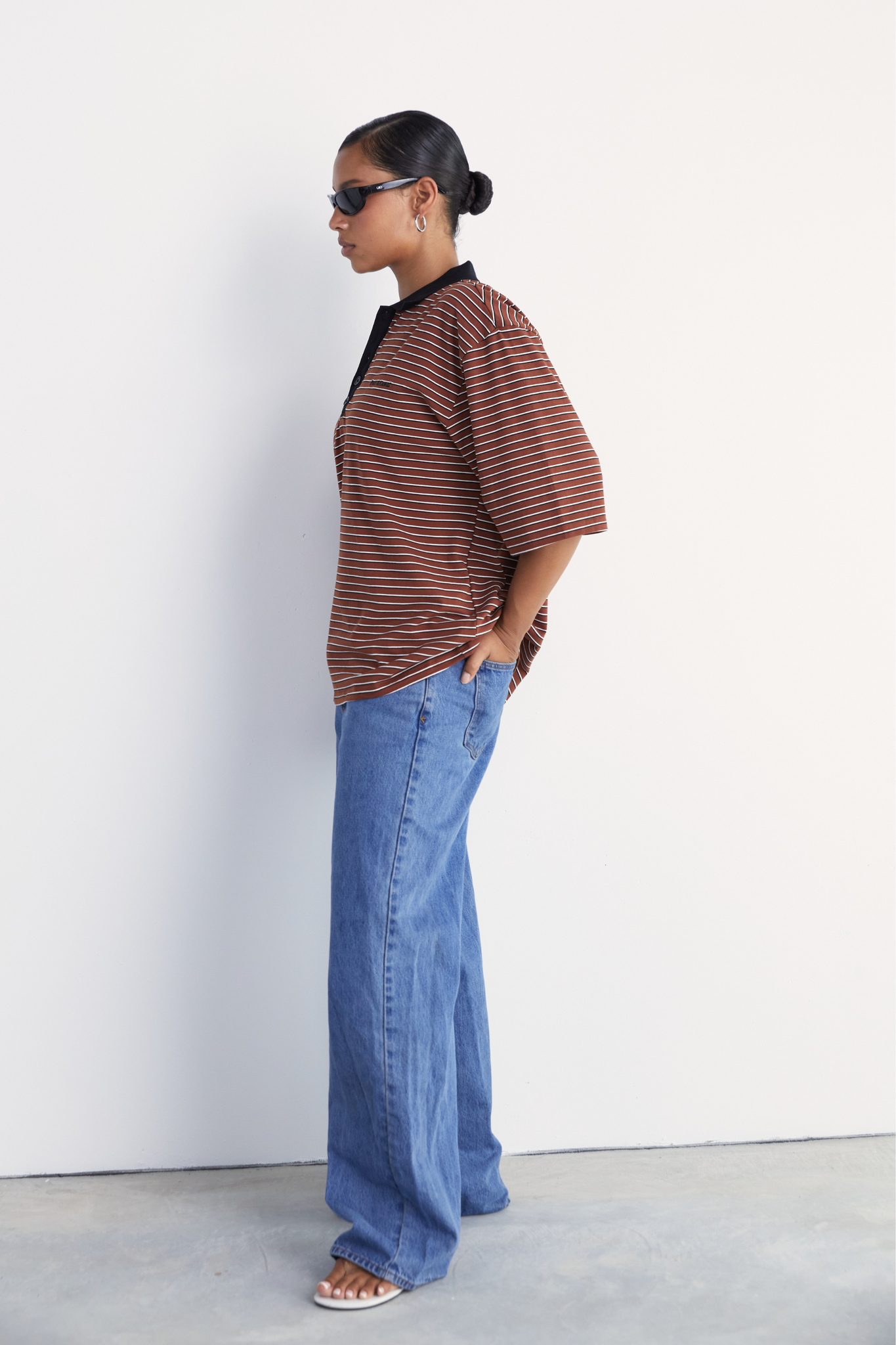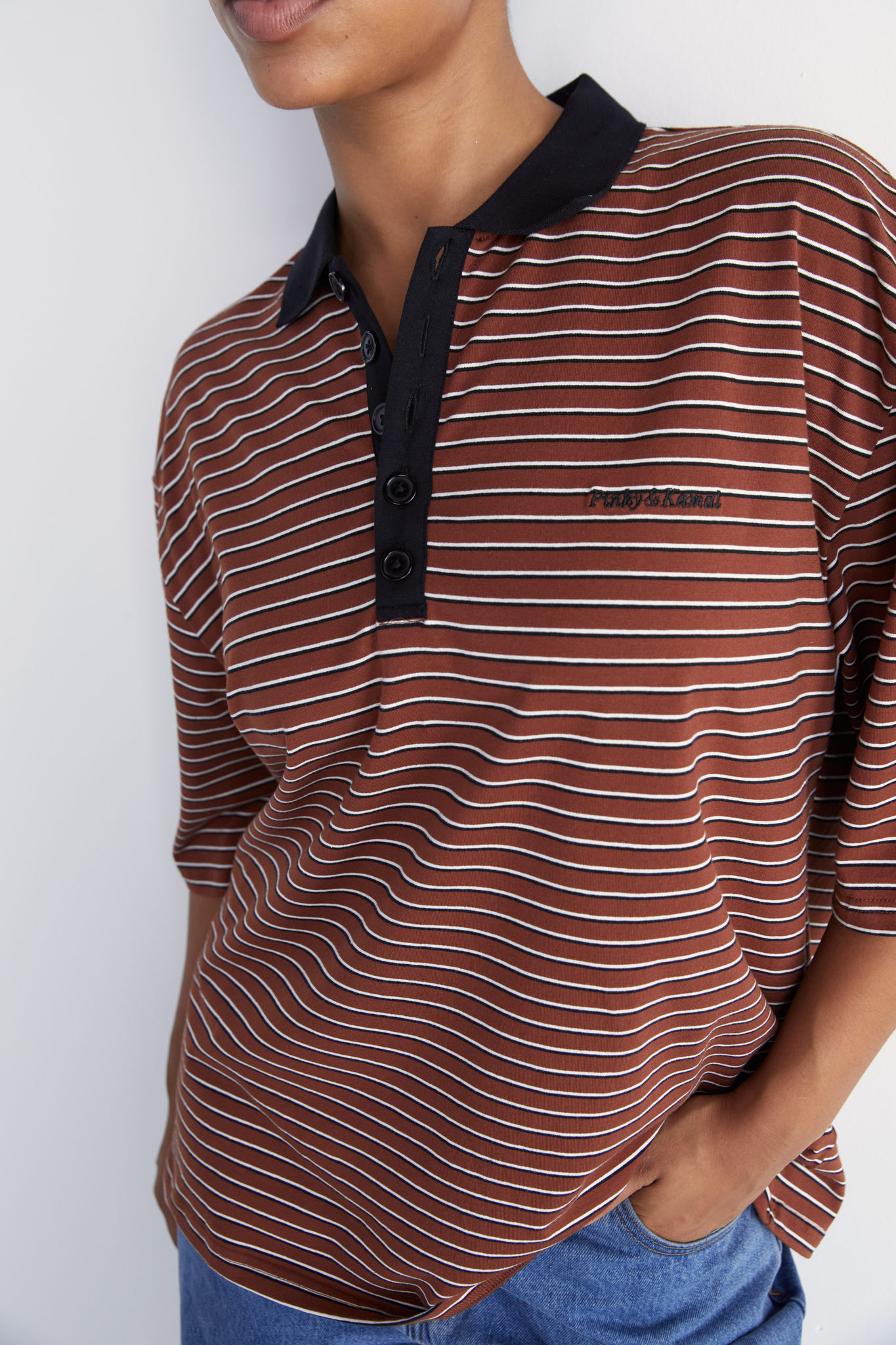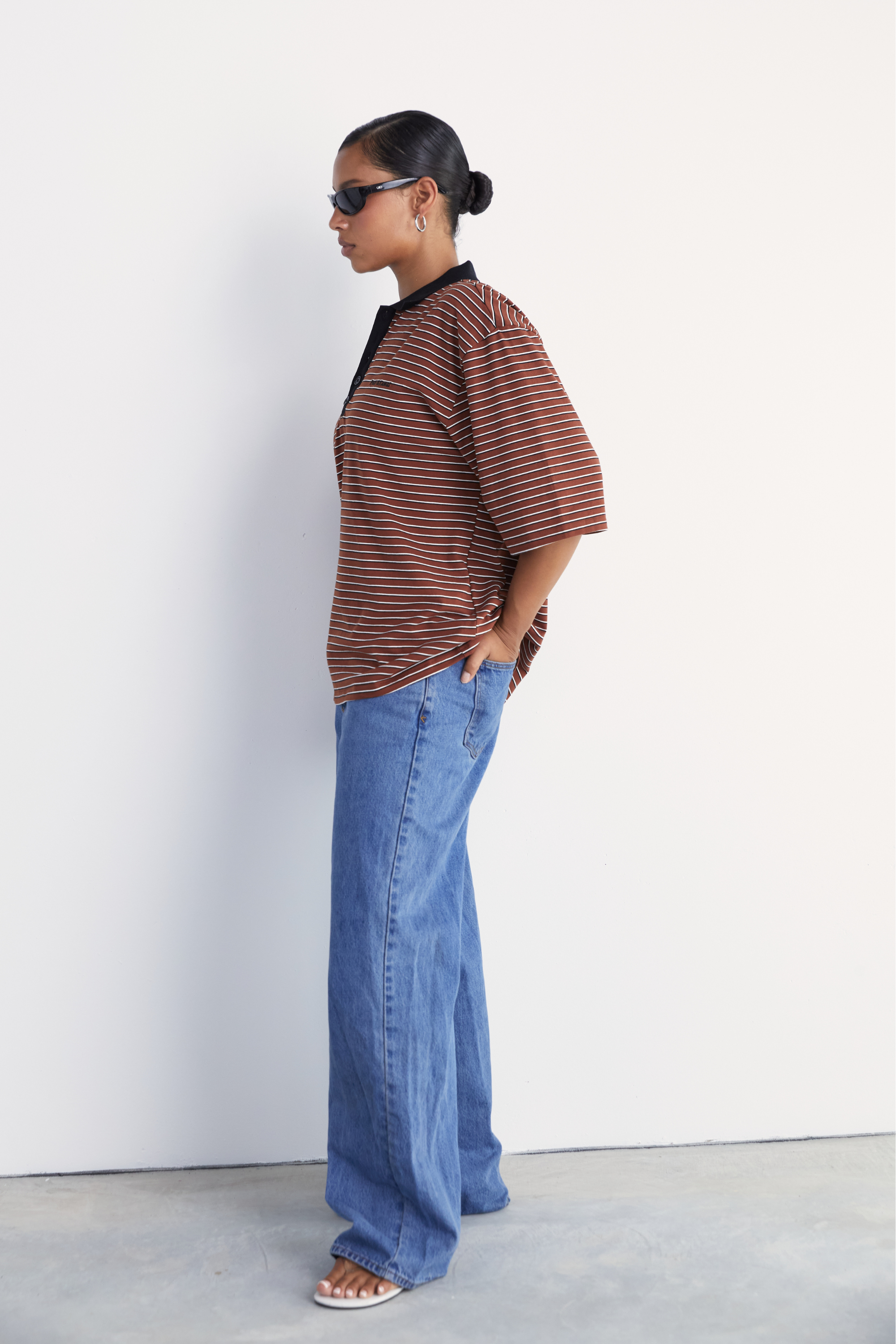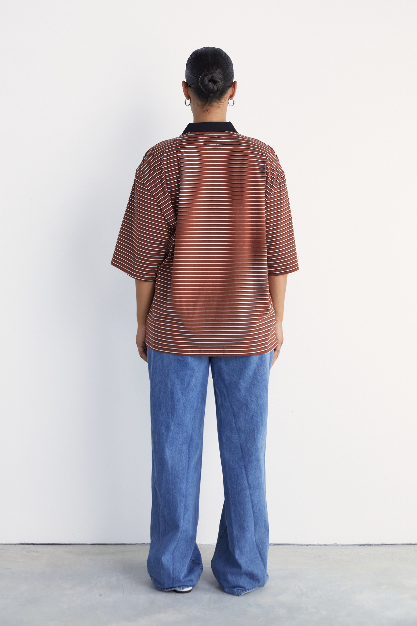 A modern take on the classic polo with a sharp collar and an open V neckline. The relaxed, slightly oversized silhouette creates an effortless fit. Short sleeves and dropped shoulders give it a casual and laid back feel, while the striped finish offers a sleek and minimal update to a timeless style. Crafted from soft Cotton Spandex for everyday comfort.