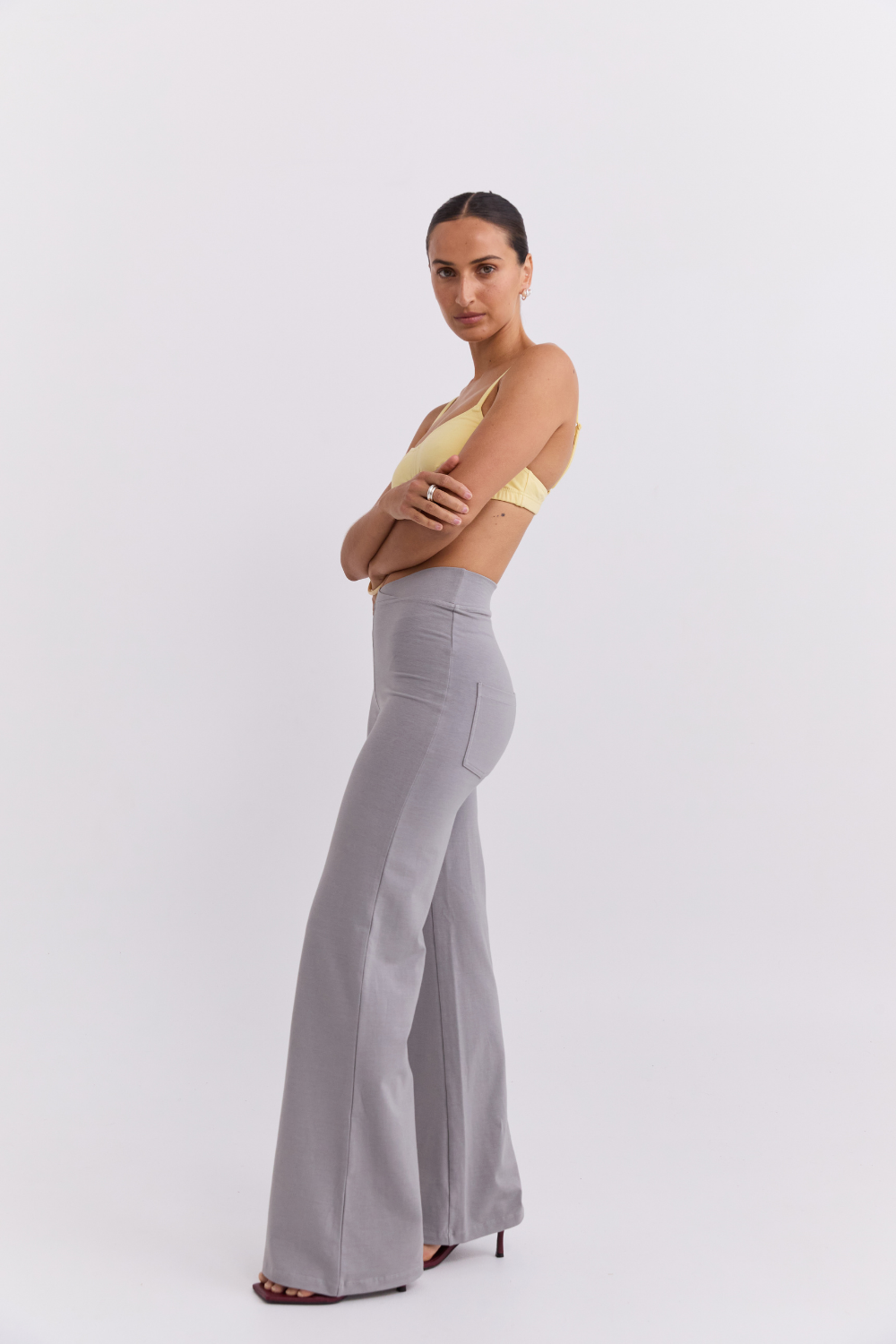 An ode to naughties nostalgia, the Wrap Band Yin Flare is a new statement piece designed with a high, double-layered waistband for a secure and sculpting fit. The soft, supportive fabric moves with you, offering ease through every moment, from high-intensity training to daily wear. Finished with two back pockets for functionality. Crafted in our signature blend of Bamboo, Organic Cotton, and Spandex, breathable, durable, and consciously made.